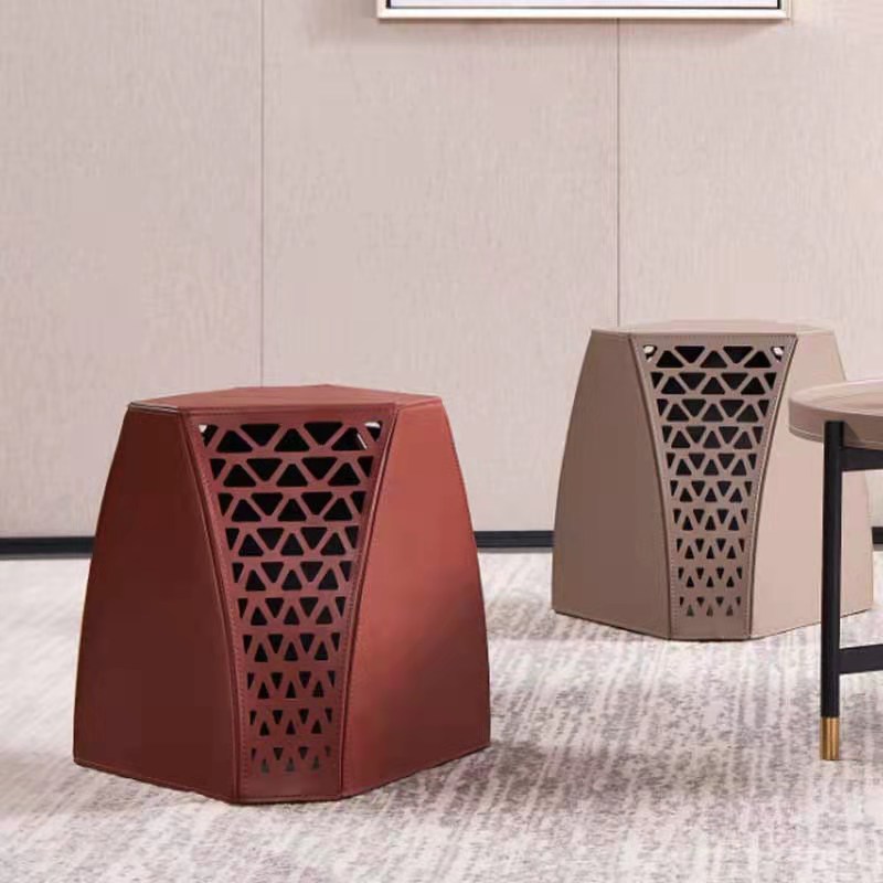 Italian simple full frosted leather magic cube shoe changing stool bedroom dressing stool