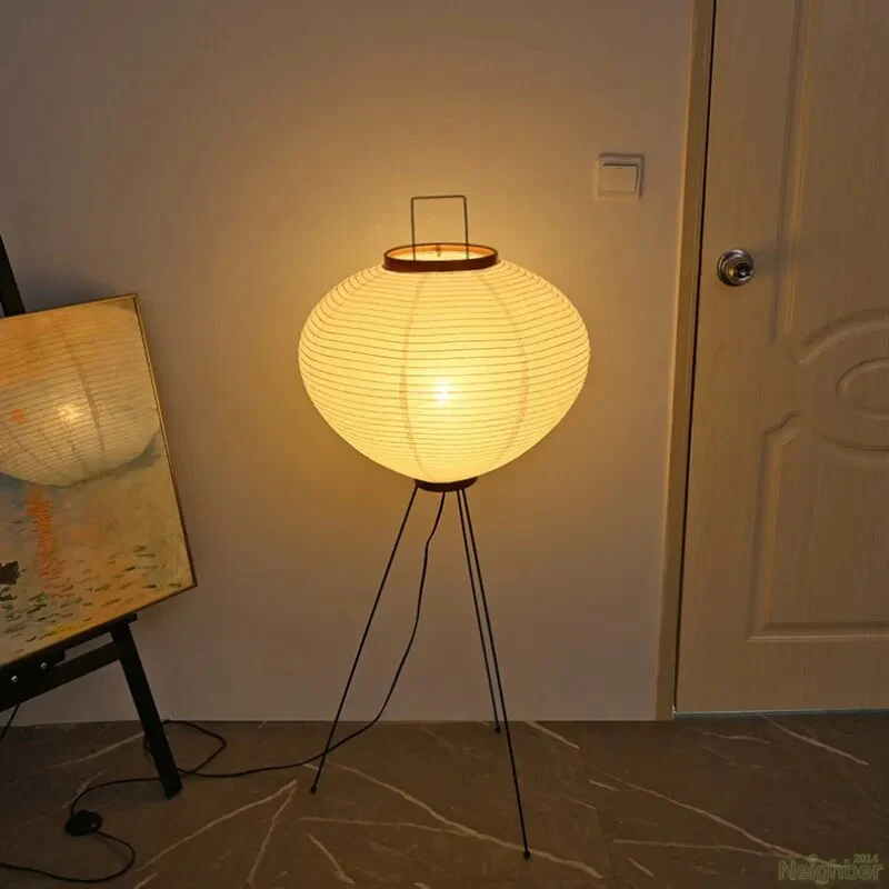 Japanese Wabi-Sabi Style Rice Paper Round Floor Lantern Lamp