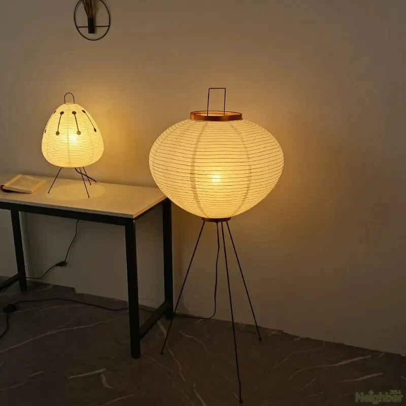 Japanese Wabi-Sabi Style Rice Paper Round Floor Lantern Lamp