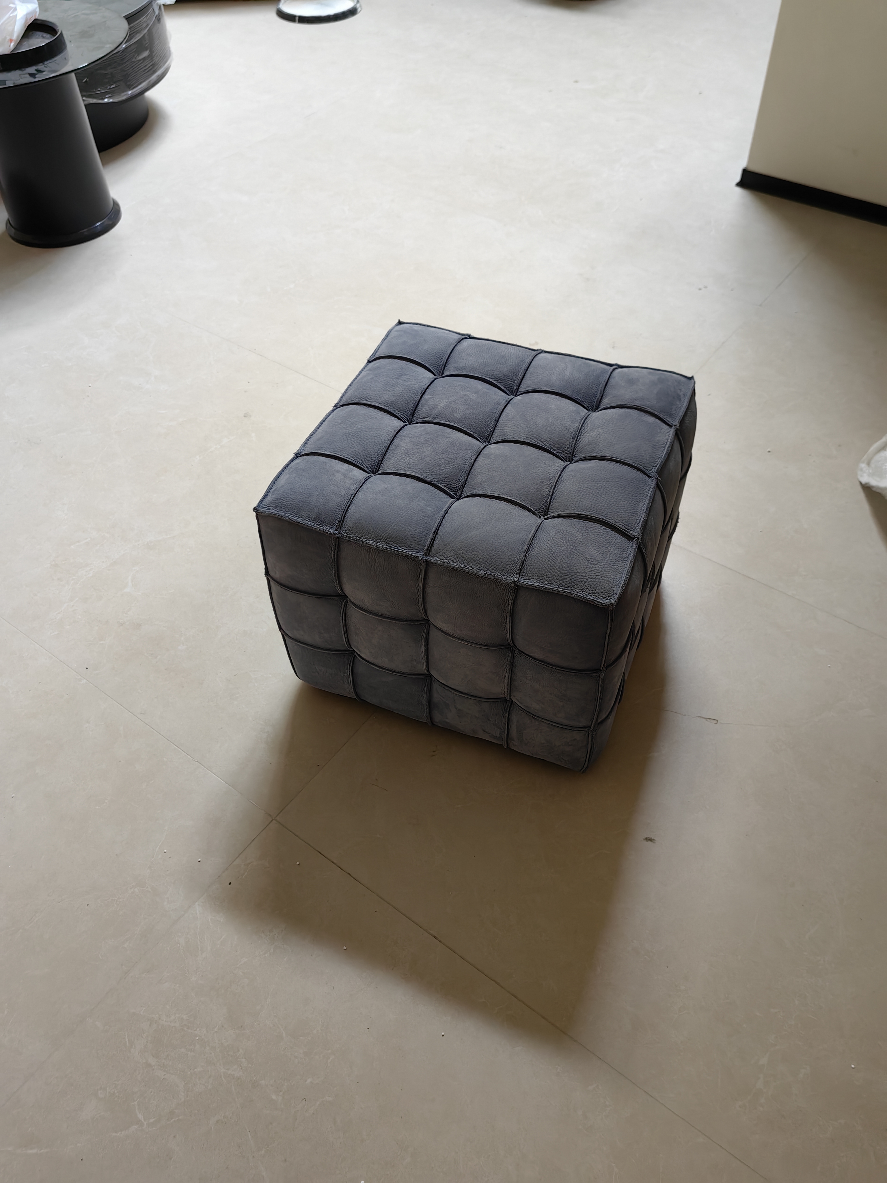 Italian simple full frosted leather magic cube shoe changing stool bedroom dressing stool